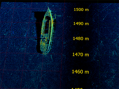 In addition to bathymetry, geometrically correct 3D imagery from the 3DSS-DX-450 ensures that all potential hazards and/or objects of interest are identified from a safe distance. Real-time imagery data can also be colorized by backscatter or by depth to guide survey planning near hazards. These views also provide finescale bathymetry and texture information that differentiates seabed composition types.